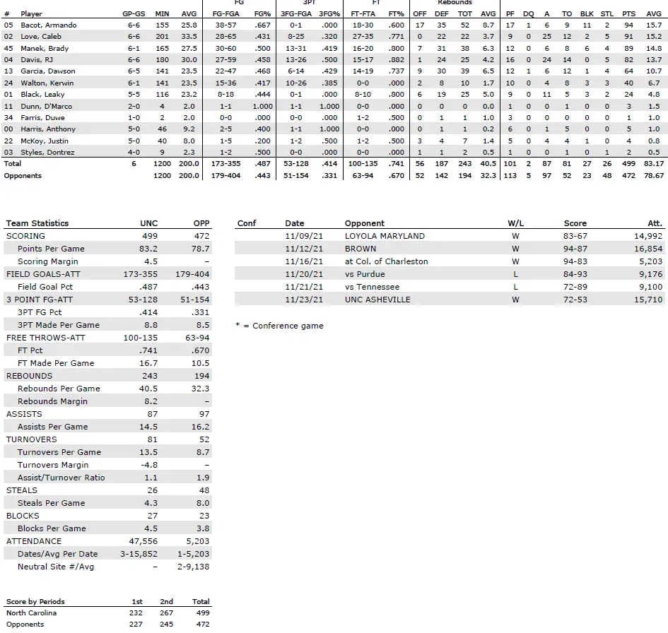 On the offensive end, there were stretches of empty possessions and several missed layup attempts. But Armando Bacot was back to his dominant self inside (22 points and seven rebounds) and, with the Tar Heels (4–2) shooting well (48.1% from floor), there were some positives to take into an eight-day holiday break before facing Michigan, including better overall defense.