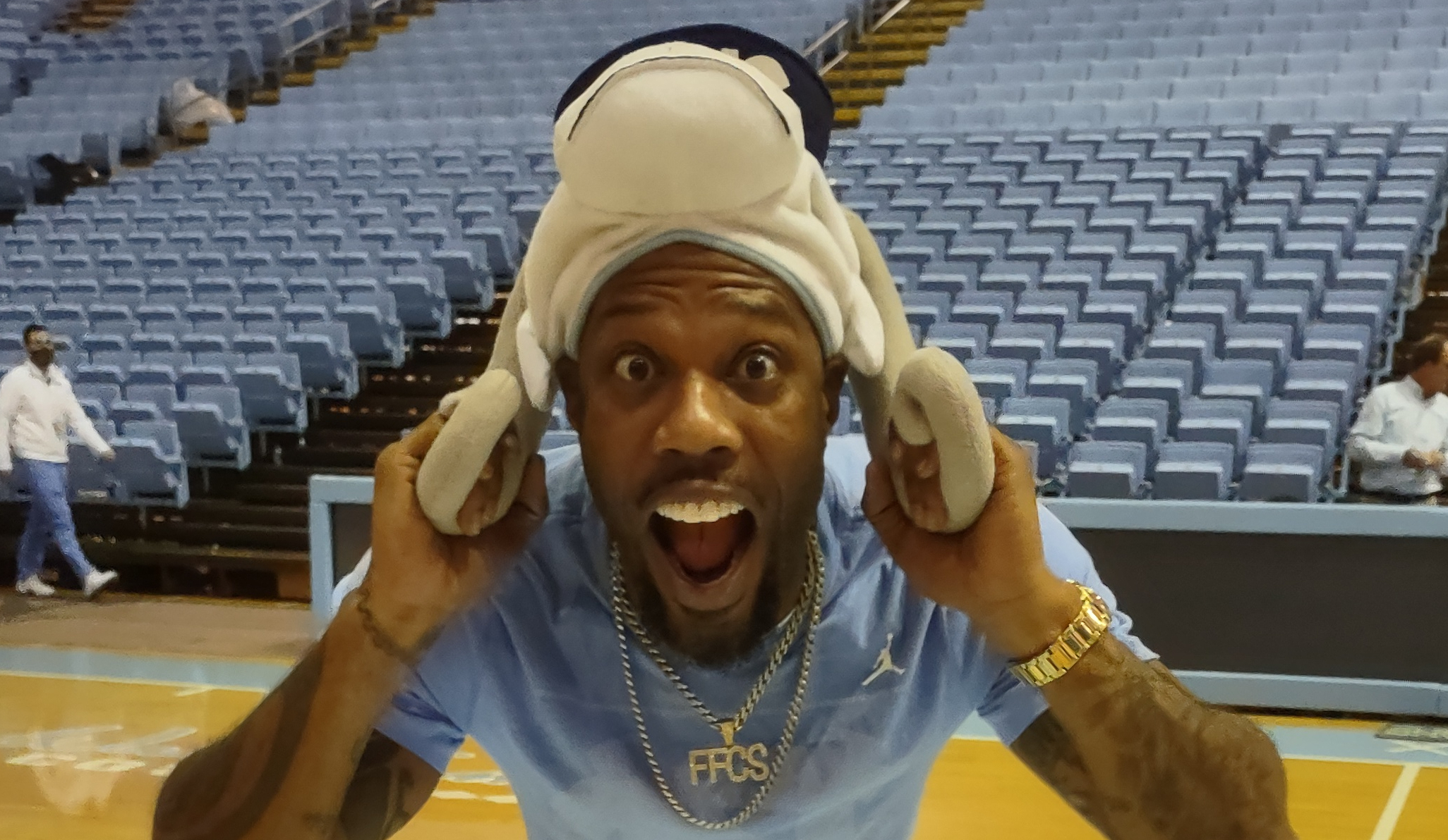 It’s obvious to B Daht that fans make more noise when they’re seated and focused on the game. During critical moments, he challenges fans: “If you think you’re a Tar Heel fan, you need to make some noise right now. I want some energy from my Tar Heel family.”