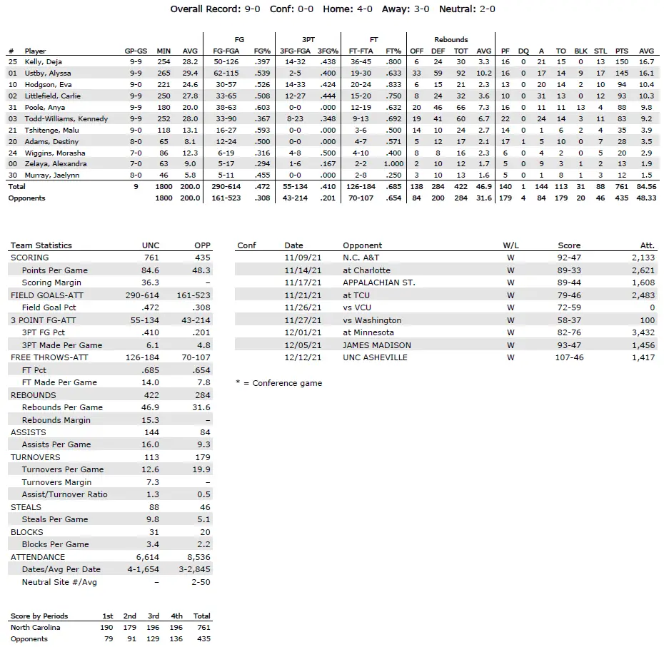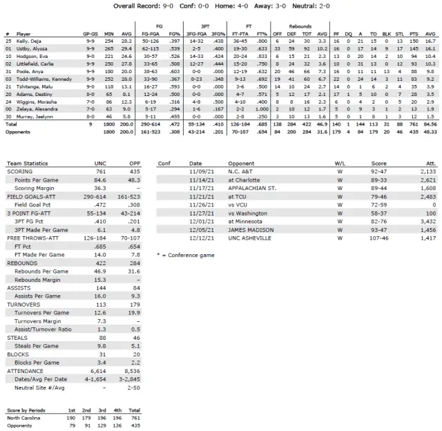 UNC season statistics