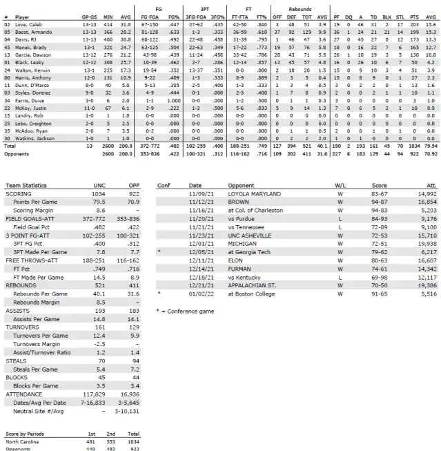 It’s always hard to gauge because it came against a bad Boston College team but Hubert Davis loved the defensive effort Sunday in Chestnut Hill, particularly guarding the basketball and defending inside. He has preached to his team that he doesn’t want to give up layups, dunks, uncontested 3-point attempts or second-chance points.