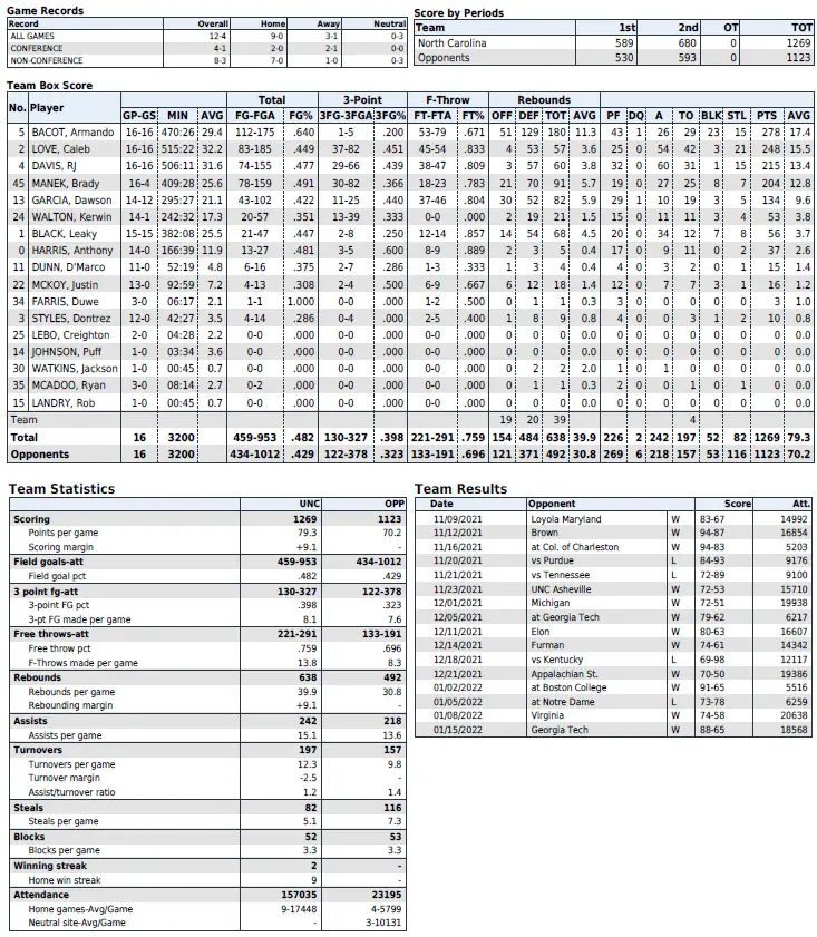 As it stands, the AP poll voters are so unimpressed that UNC only appeared on one ballot, with ESPN’s Dick Vitale voting the Tar Heels No. 24. Jerry Palm’s latest bracket projection has the Tar Heels as the No. 11 seed in the East Region.
