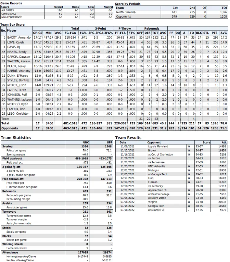 Carolina (12–5, 4–2 ACC) visits Wake Forest (15–4, 5–3) at 8 p.m. Saturday (ACC Network). The Deacons have won back-to-back games and four of their last five, with the only loss to Duke.
