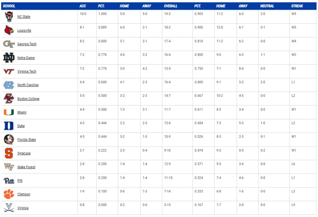 ACC standings