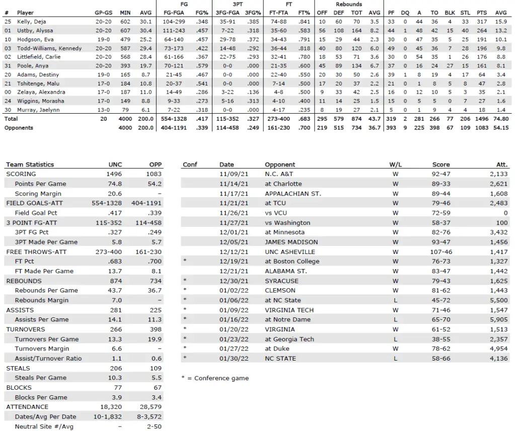 UNC season statistics
