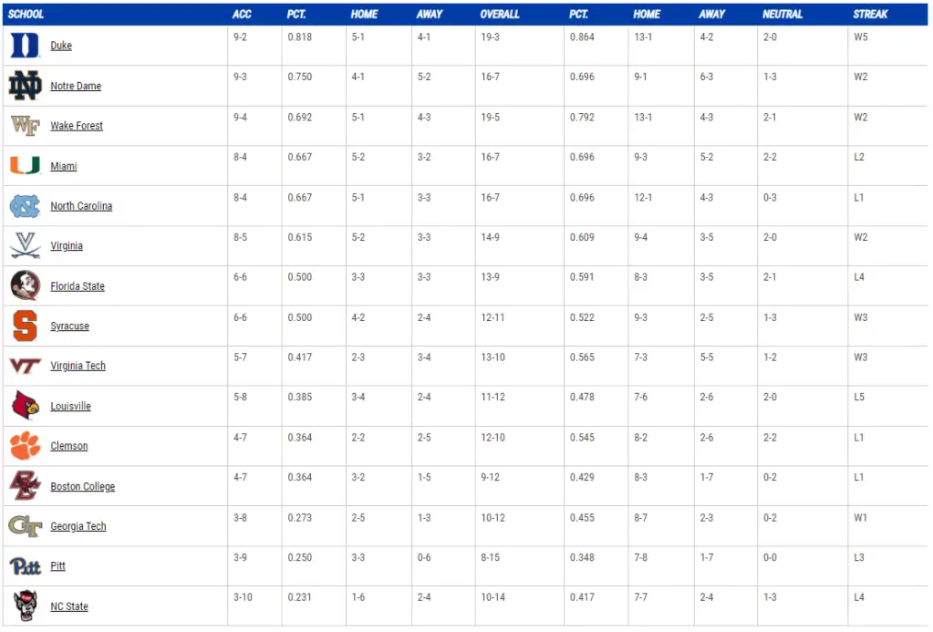 ACC standings