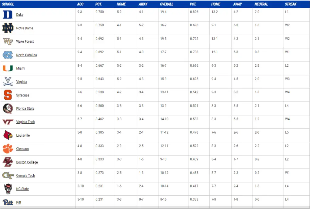ACC standings
