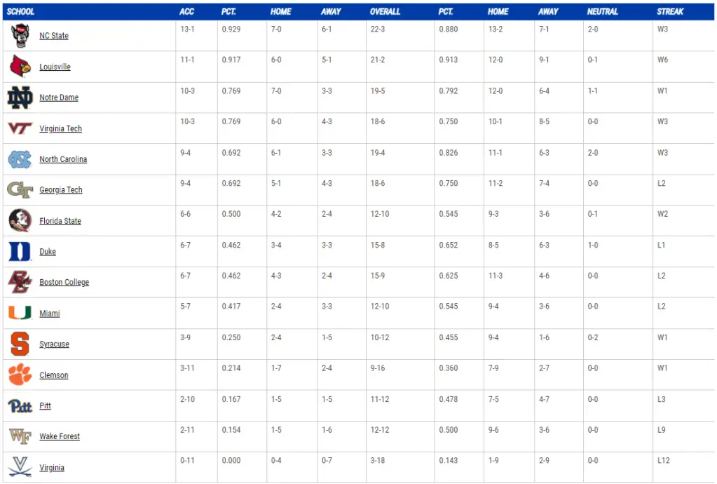 | 30 | 66–58 loss, 16–4, 6–4 | Home | No. 5 N.C. State |