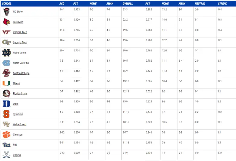 All five of Carolina’s losses have come against ranked teams: No. 4 N.C. State (twice), No. 16 Georgia Tech, No. 19 Notre Dame and No. 23 Virginia Tech. The Tar Heels have one win against a ranked team, winning at Duke on Jan. 27 when the Blue Devils were No. 21.
