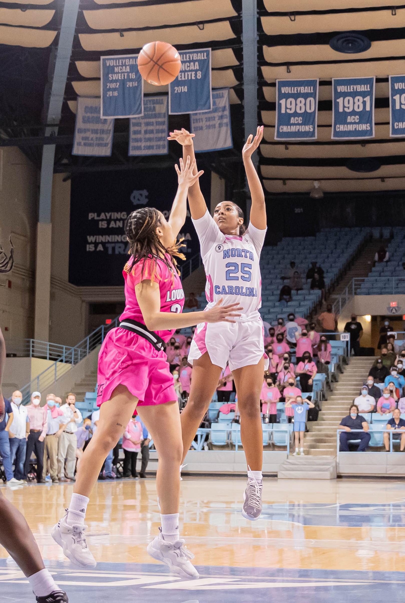 None of them remember that NCAA Sweet 16 victory, but they’ll never forget the No. 23 Tar Heels’ 66–65 upset of No. 3 Louisville at Carmichael Arena on Thursday night. It was a signature win and their biggest since knocking off No. 1 Notre Dame in 2019.