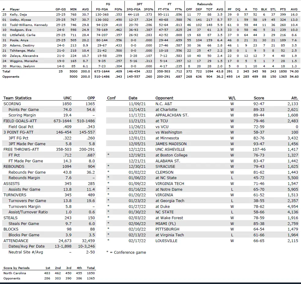 UNC season statistics