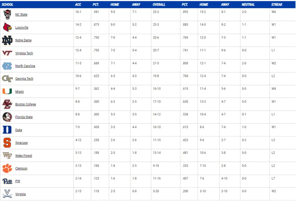 The Tar Heels are alone in fifth place, a game behind Notre Dame and Virginia Tech, and still have a shot at earning a double-bye in the ACC Tournament. If UNC sweeps its two games next week against Virginia and Duke and the Hokies lose to either Miami or N.C. State, the Heels would get a double-bye.