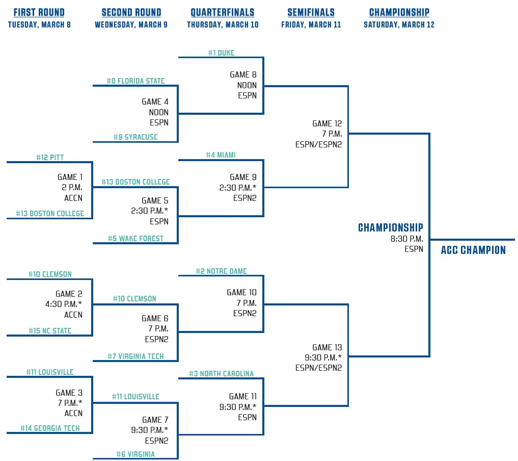 Smith thought that his teams should just concentrate on how they play rather than the opponent. Davis says that this approach is helpful for the No. 3-seed and No. 18-ranked Tar Heels (23–8) this week because their opponent at 9:30 in a Thursday quarterfinal at the ACC Tournament in Brooklyn could be No. 6-seed Virginia Tech or No. 11 Louisville.
