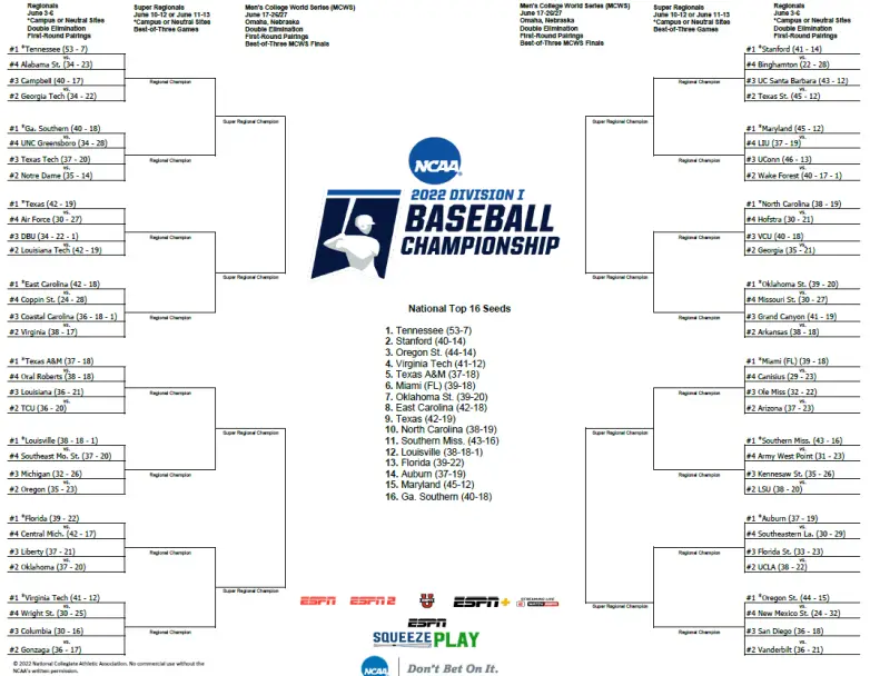 Game 1: No. 1 North Carolina (38-19) vs. No. 4 Hofstra (30-21), 2 p.m., ESPN+