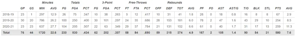 After Nance started only one of 23 games as a freshman and averaged 13.9 minutes and 2.9 points per game, he’s averaged around 26 minutes per game the last three seasons. He averaged 8.5 points as a sophomore, 11.1 points as a junior and 14.6 points as a senior.