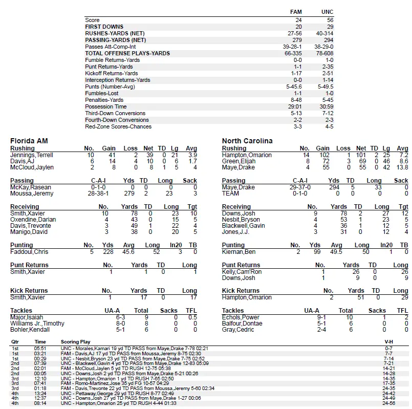 UNC 56, Fla. A&M 24