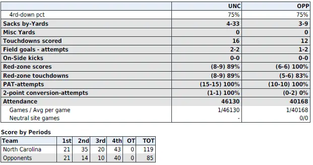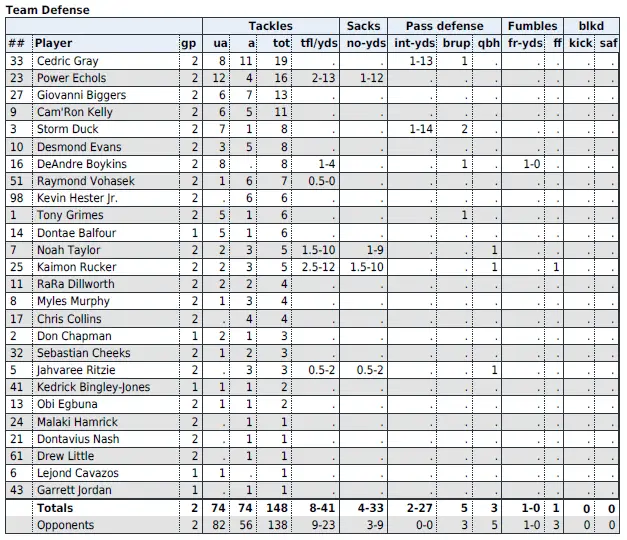 Focus and improvement on defense will be the key to whether Carolina has a successful season. One week after a depleted FCS Florida A&M team scored 24 points on UNC, the Rattlers, with several previously ineligible players back, could only muster a field goal in a 59–3 loss to Jackson State.