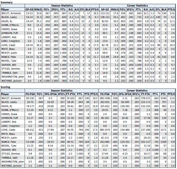 Jamarius Burton was the most impressive guard, scoring a career-high 31 points with six rebounds. He kept it close when it looked like UNC would pull away and scored seven in the last 4:01.