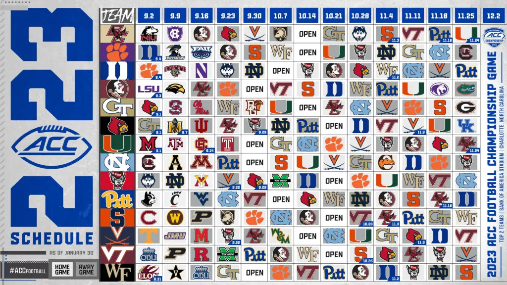The ACC’s television partners will announce game times and television for next season’s games later this year.