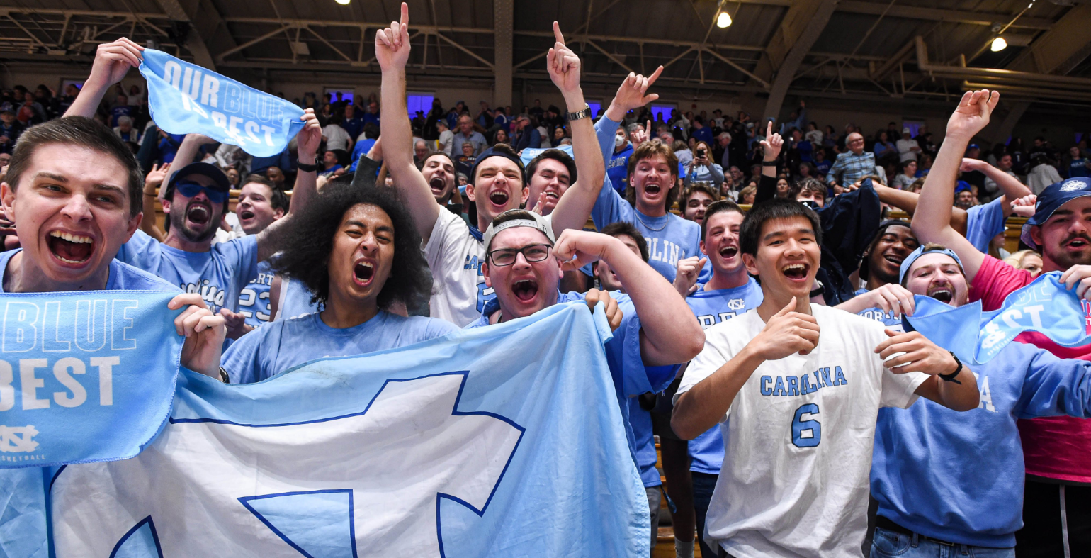 The overwhelming majority of the sellout crowd of 9,314 fans in Cameron Indoor Stadium wore Duke blue, but the folks in Carolina blue were loud and all but nullified the Blue Devils’ home-court advantage. The 45–41 win completed UNC’s second consecutive regular-season sweep of its rivals.