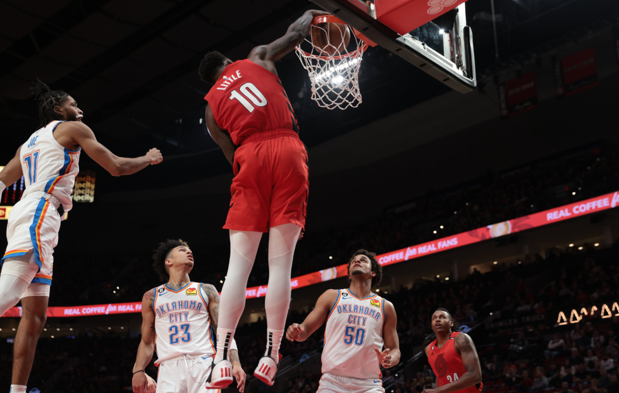He did all he could for the depleted Blazers with a season-high 28 points in 31 minutes as they kept it close before losing 118–112 at home Sunday night against the Oklahoma City Thunder.