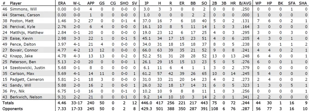 UNC added right-handed junior transfer pitchers Jake Knapp (who was excellent starting Saturday’s 12–2 win over State), Matt Poston (four saves), Kevin Eaise (five saves) and Ben Peterson, as well as redshirt freshman left-hander Dalton Pence, to the pitching staff, but none had ACC experience.
