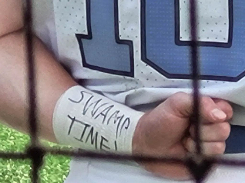 Before the game, he had the words “SWAMP TIME!” written on the tape that was around his left arm, and “Donkey” — as his teammates call him — proceeded to deliver a key three-run homer in the Tar Heels’ 5–0 victory Saturday over Wright State at Bob Warn Field to stay alive in the Terre Haute Regional.