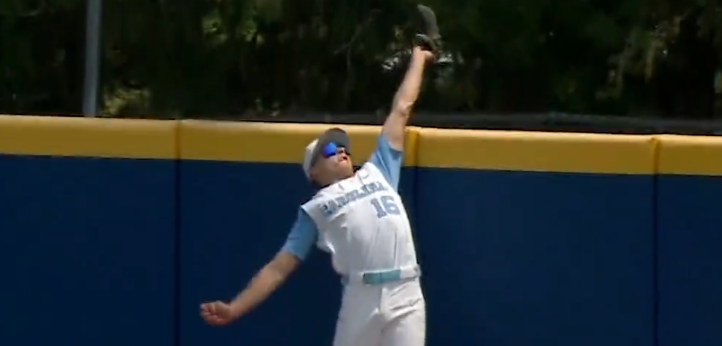 In the seventh inning of UNC’s 17–7 victory on March 21 at Pittsburgh, center fielder Vance Honeycutt made an insane leap to rob the Panthers’ Justin Acal of a home run. That was the No. 3 play on the segment the next day.
