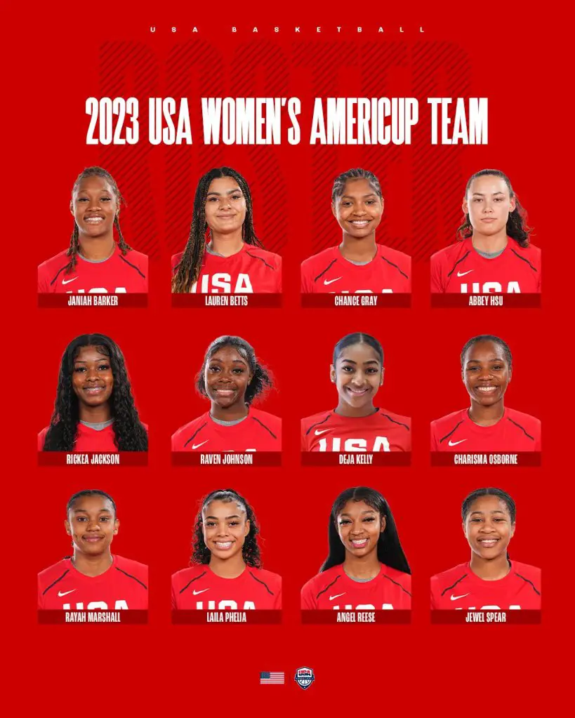 It will be a talented American roster, featuring center Angel Reese, who led LSU to the national championship last season, averaging an NCAA-leading 23.0 points and 15.4 rebounds.