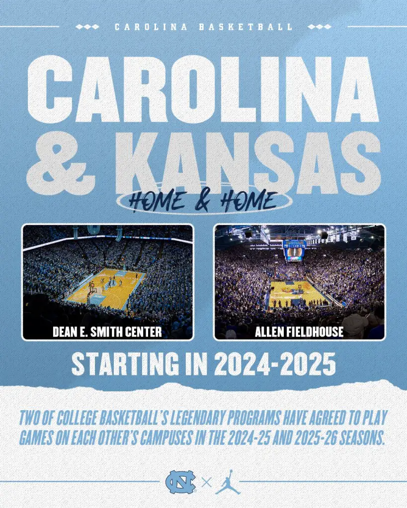 Carolina and Kansas will play a home-and-home men’s basketball series, with games in the 2024–25 and 2025–26 seasons.