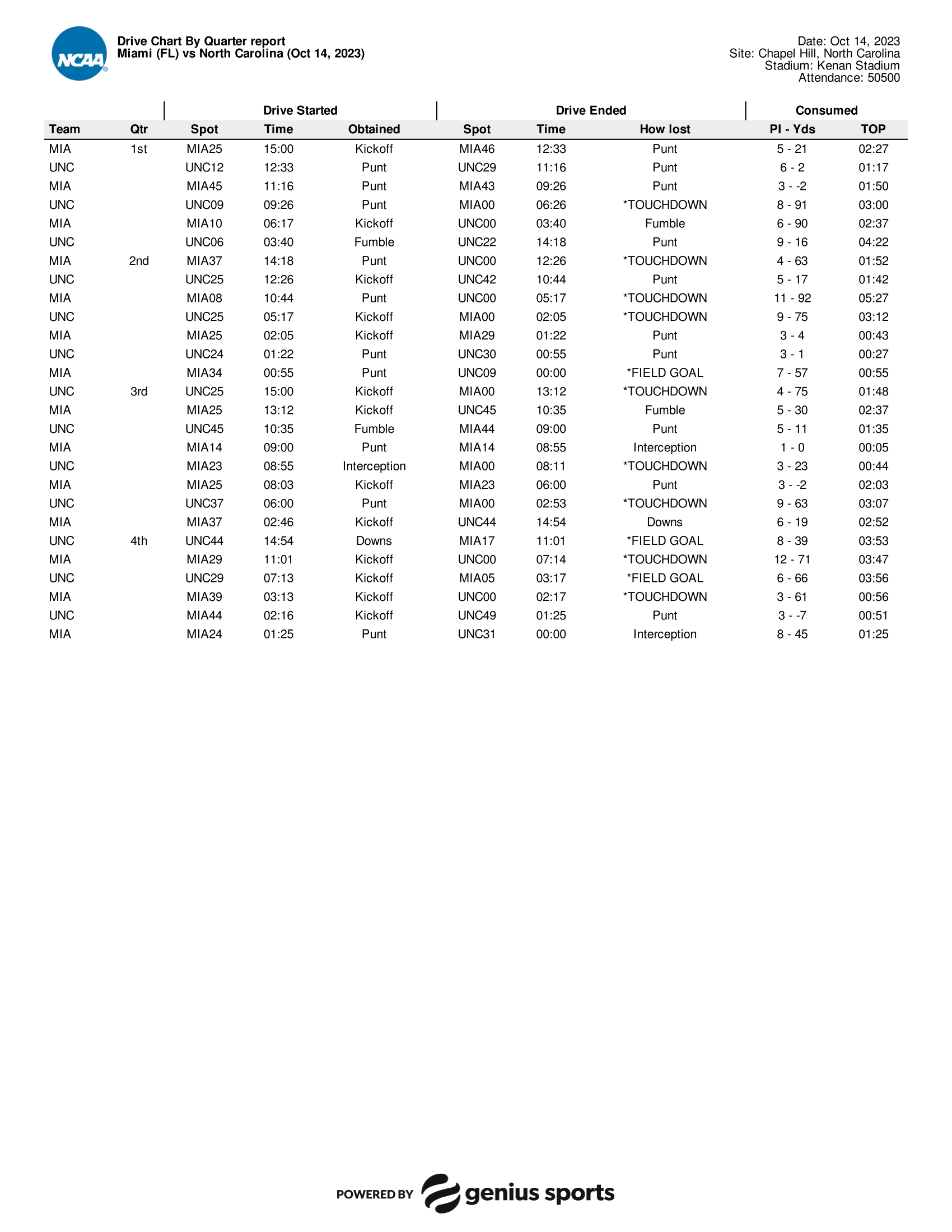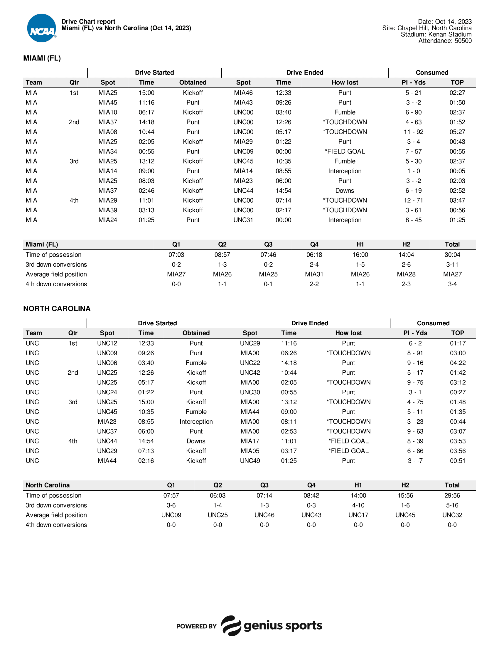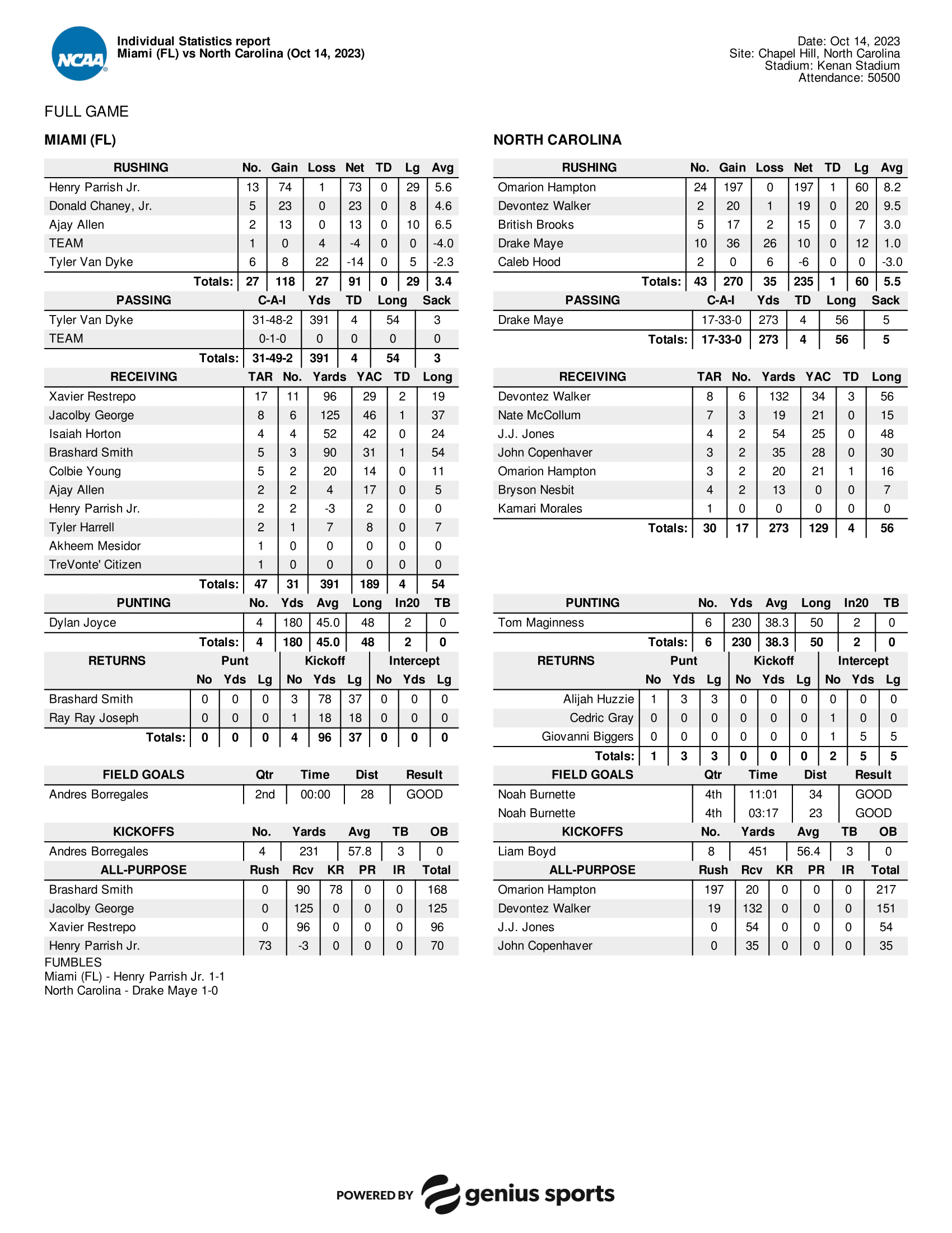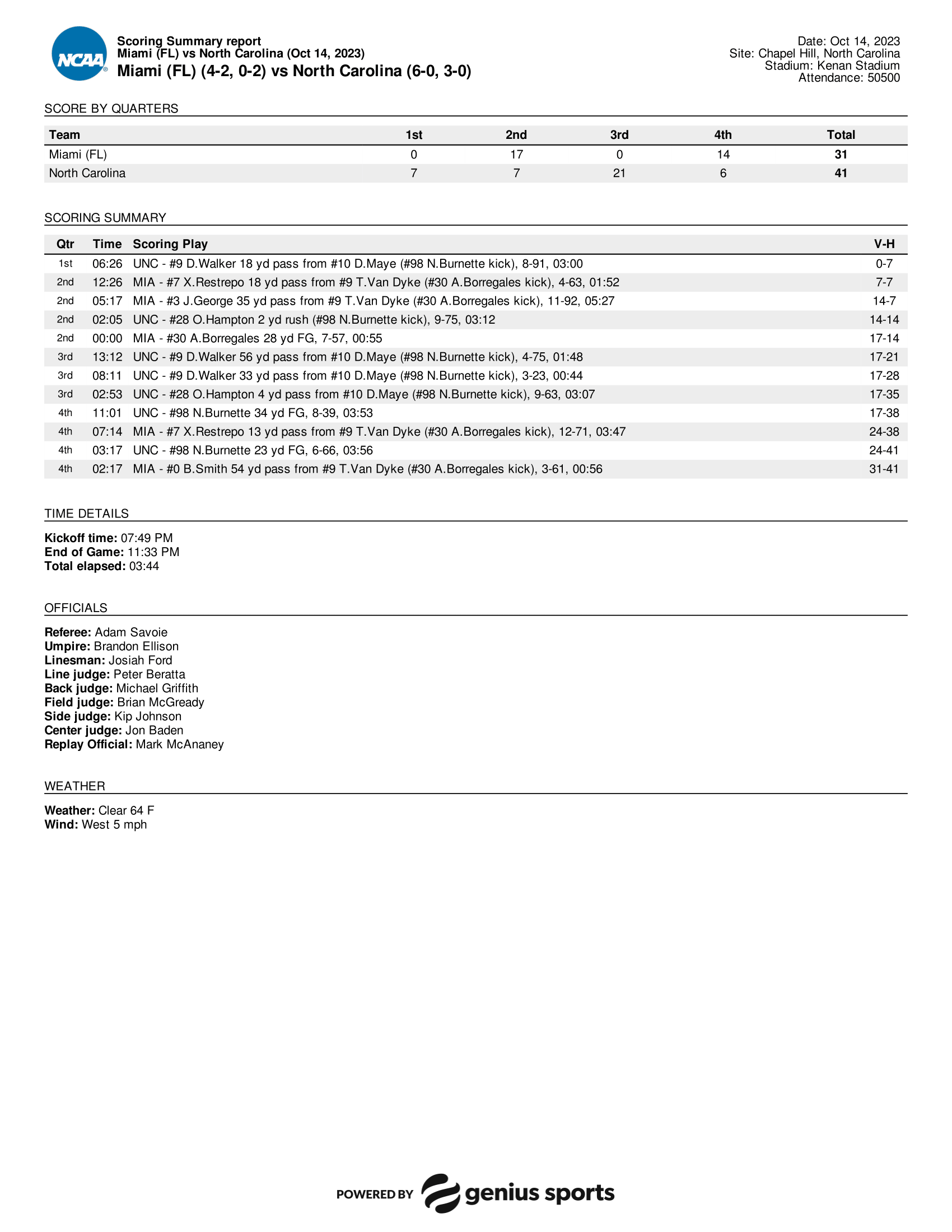 Helping Carolina’s second-half surge were turnovers from Miami (4–2, 0–2), which dropped its second straight game after winning its first four games.
