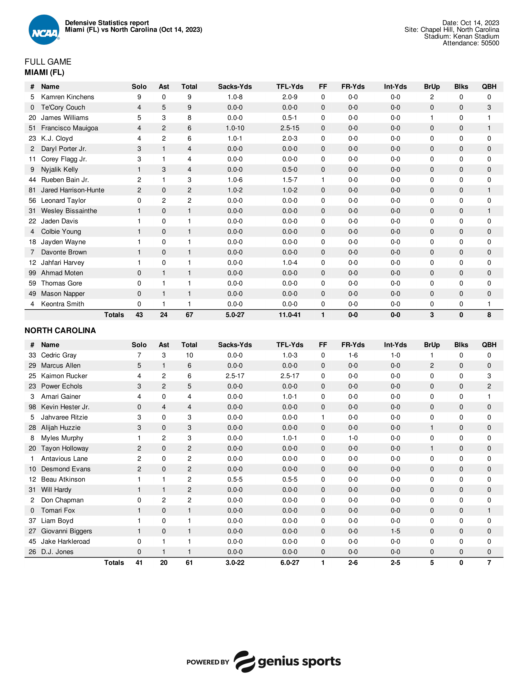“I am very proud of this team,” UNC coach Mack Brown said. “I give Miami a lot of credit that they came here with some question marks after last week’s disappointing loss and played hard. Tonight was as hard as I’ve seen them play. I said earlier this week that they could beat anybody in the country and that’s what I saw tonight. Miami fought and competed.”
