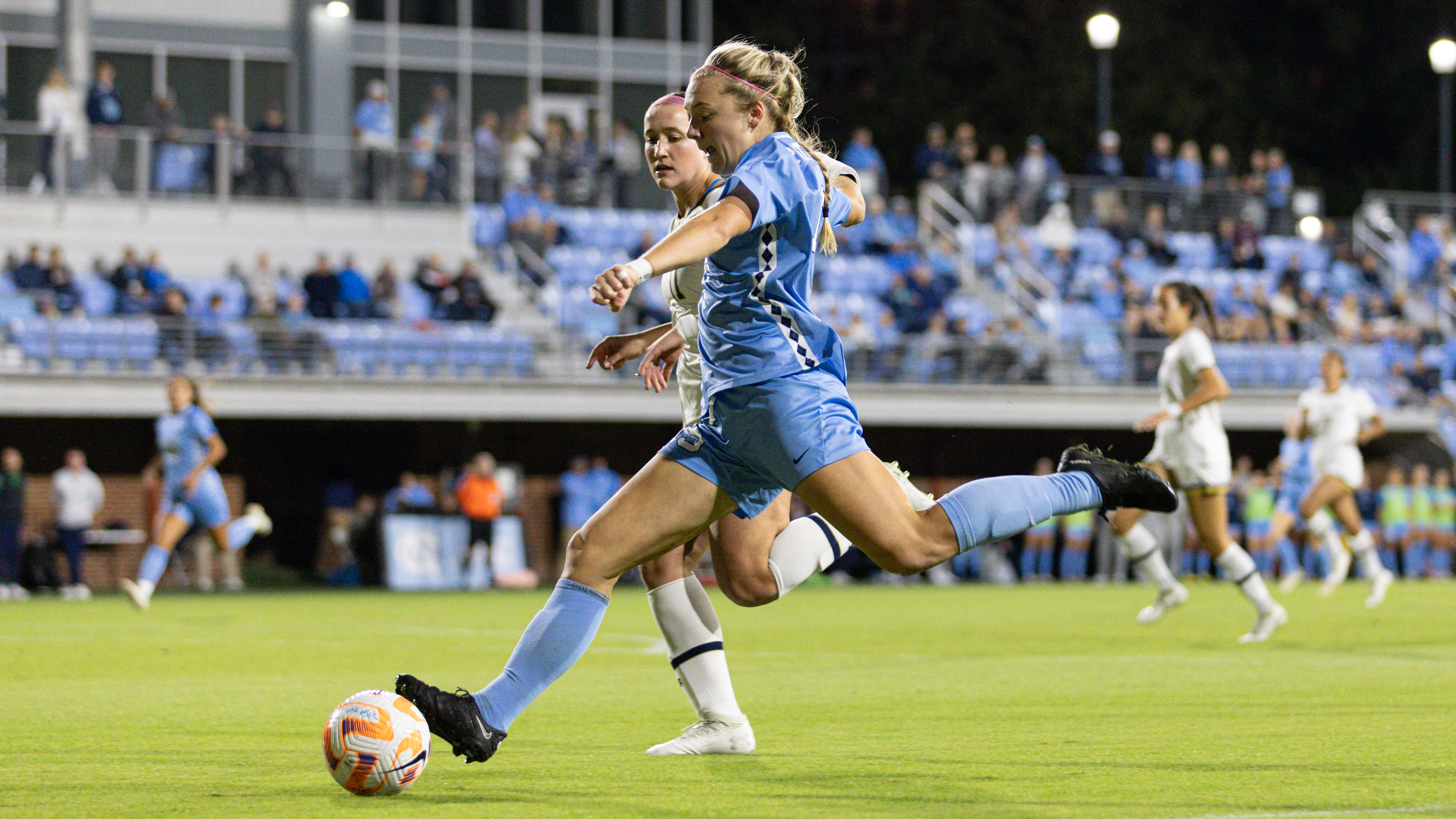 UNC (9–0–7, 4–0–4 ACC) couldn’t finish several good chances in a physical and sometimes contentious match with Notre Dame (9–2–4, 4–1–2), which scored on one of only two shots and drew three of five yellow cards.