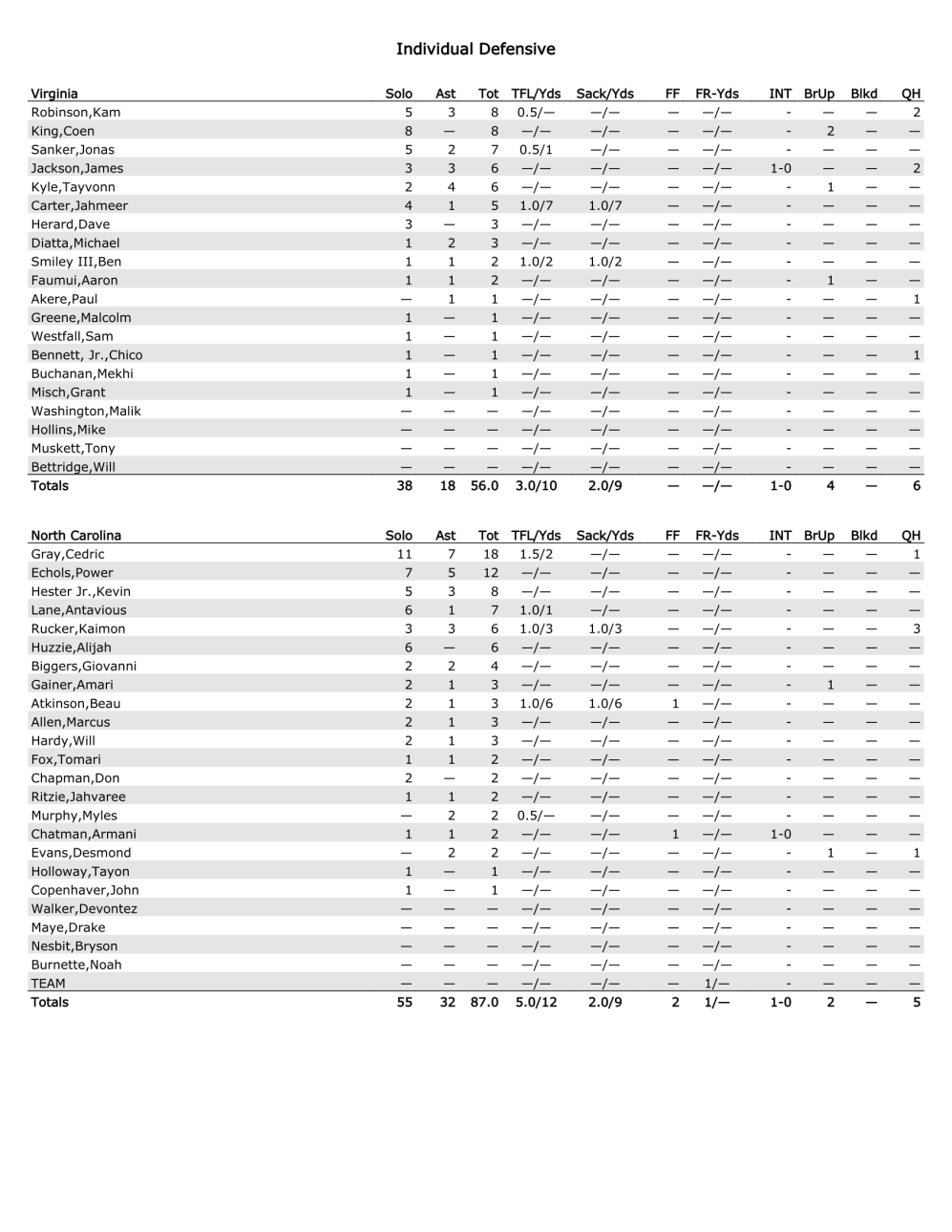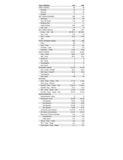 “Virginia had a plan,” UNC’s Kaimon Rucker said. “They stuck to the split outside zone plays and they were very successful off of them. Virginia came to play and we didn’t.”