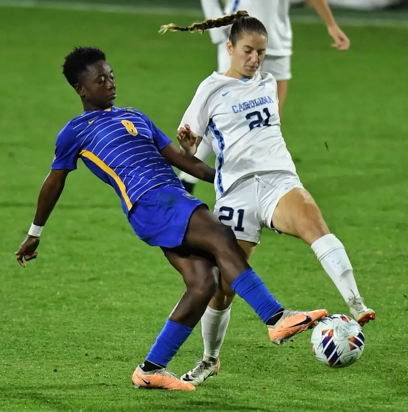 Pittsburgh produced many of the early scoring chances Sunday night. Tar Heels goalkeeper Emmie Allen tipped Deborah Ablodun’s header away near the midway mark of the first half. The Panthers had an 8–5 edge in first-half shots.