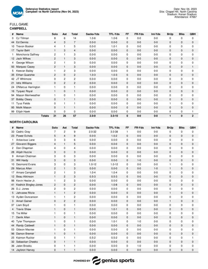 Facing an FBS team didn’t stop the defense’s struggles as Campbell moved the ball easily, rolling up 192 first-half yards. For the third consecutive game, UNC had trouble dealing with an opponent that pushed the tempo early on before getting better against that.