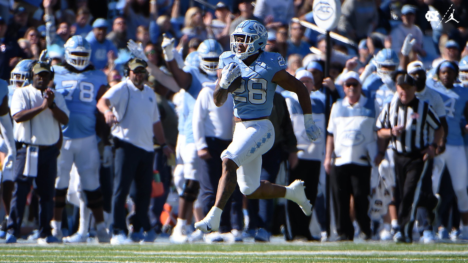 Hampton ran for 144 yards and two touchdowns, going over 1,000 rushing yards in his ninth game, the fastest since Gio Bernard needed eight in 2012. He has 1,067 yards and became the first Tar Heel to run for at least 100 yards in four consecutive games since Bernard in 2012.
