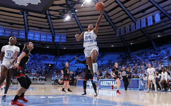 Carolina missed its first eight 3-point attempts before back-to-back 3s from Paris and Deja Kelly pushed UNC’s lead to 18–9 with 2:56 left in the first quarter. Nivar’s amazing shot came in the middle that big first-half run and shoved the lead to 20. UNC led by as many as 24 before taking a 45–26 halftime lead, had an 85–37 edge after three quarters and pushed the lead to 54 late in the game.