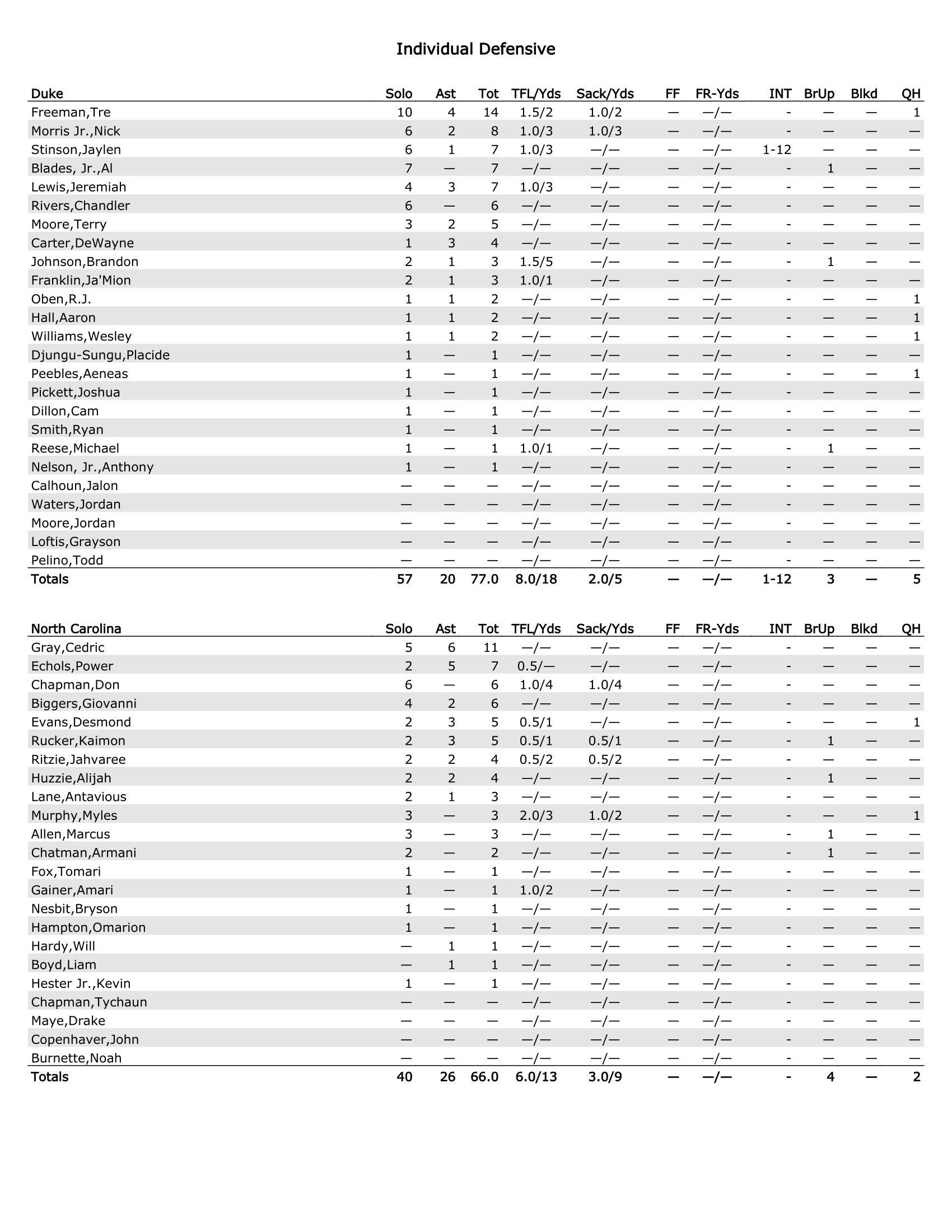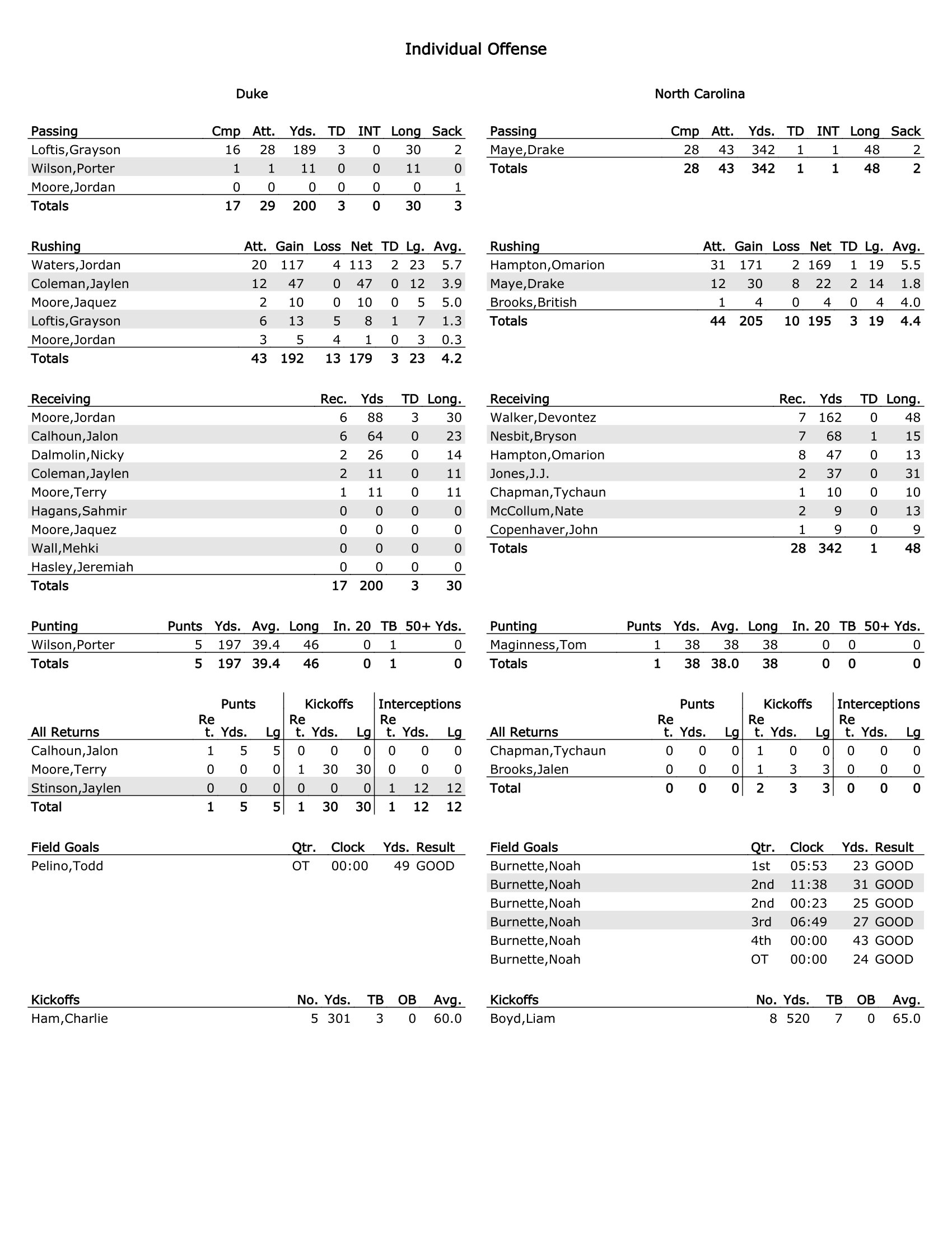 Duke had 21 total second-half yards before UNC punted for the first time.