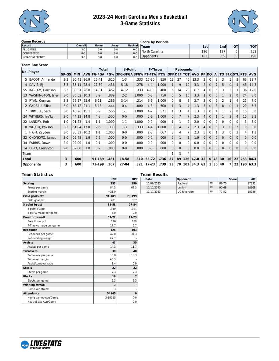 UNC season statistics