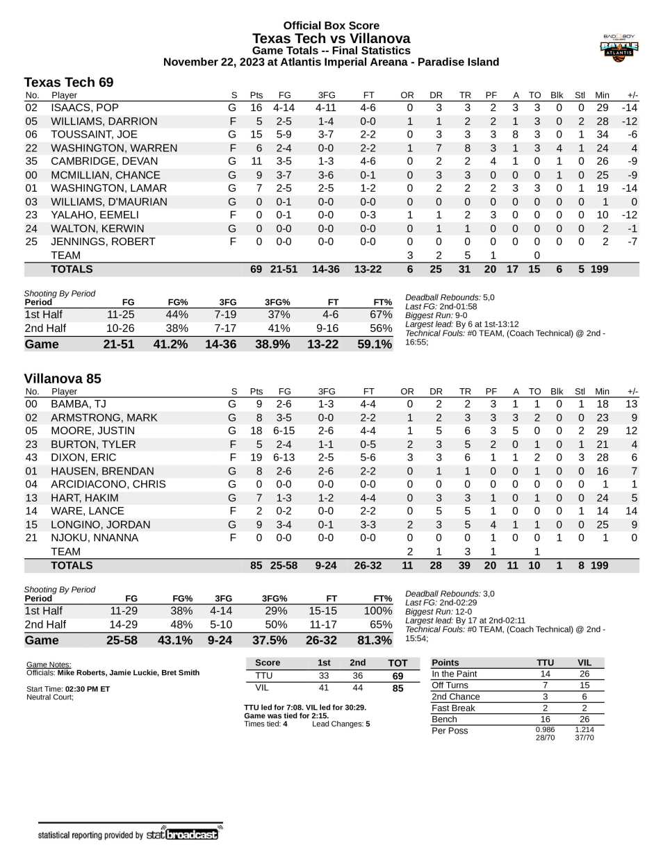 Villanova 85, Texas Tech 69