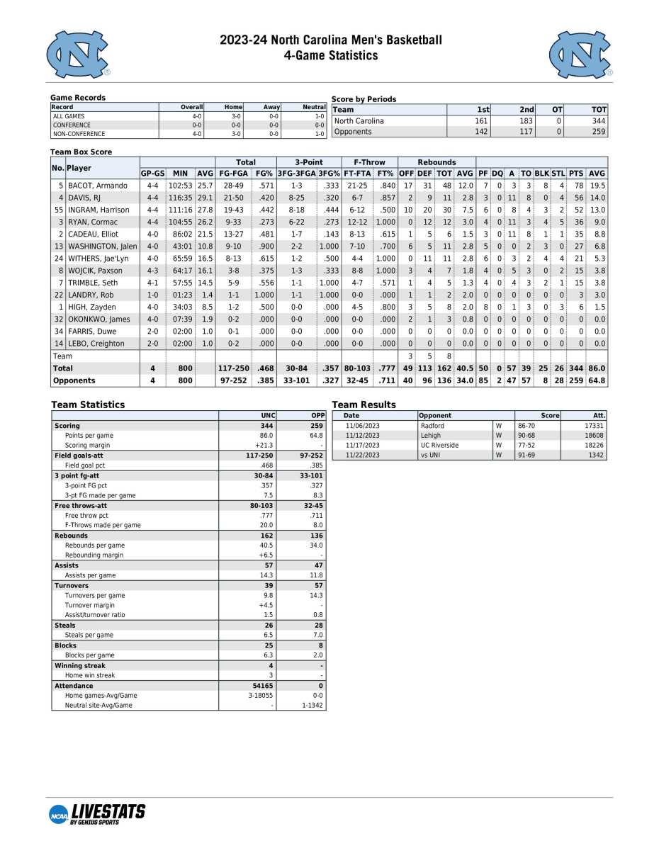UNC season statistics