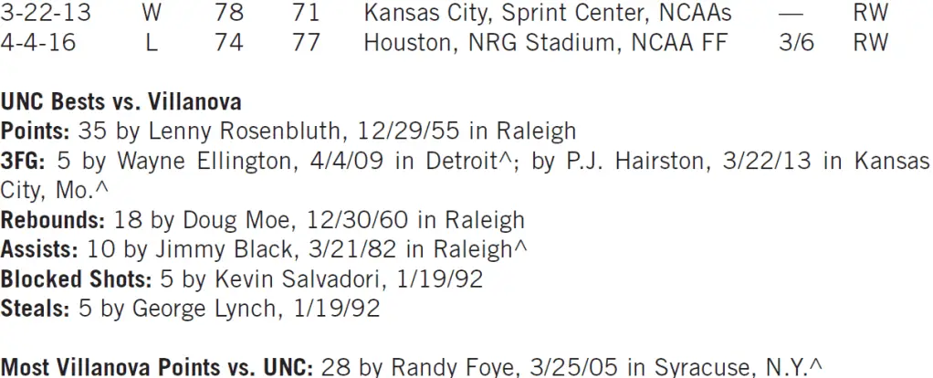 | UNC | Villanova | |