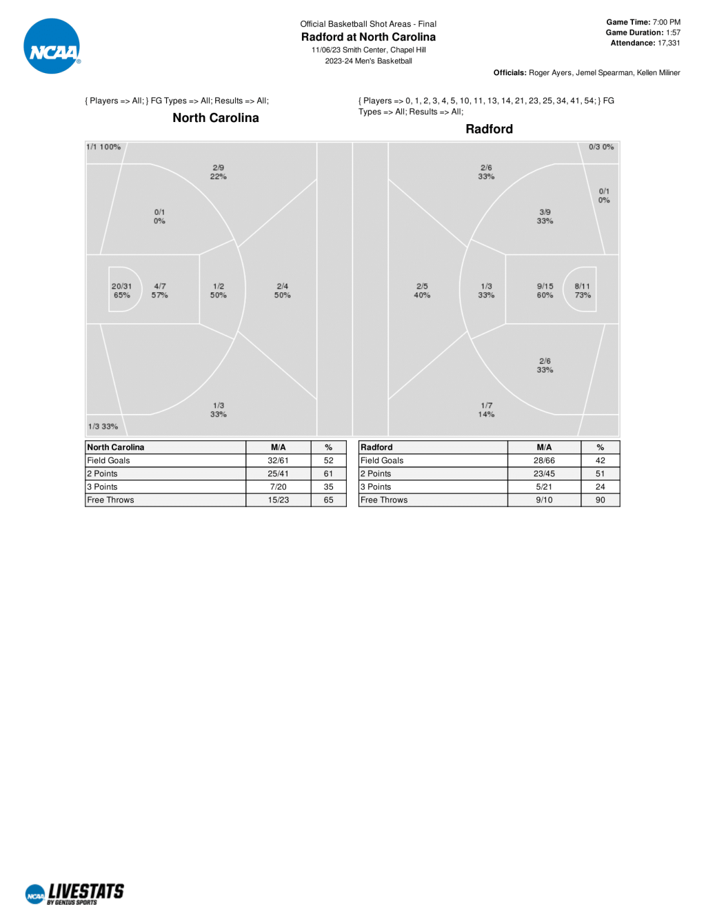Radford took advantage of defensive breakdowns many times in the first half, but the more talented Tar Heels eventually wore down the Highlanders.