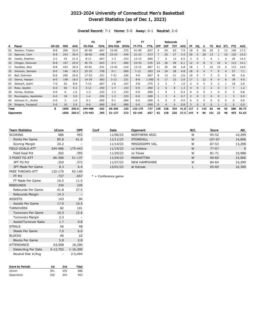 UConn season statistics