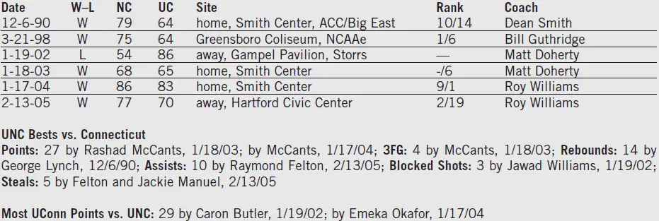 UNC-UConn series: Heels lead 5-1