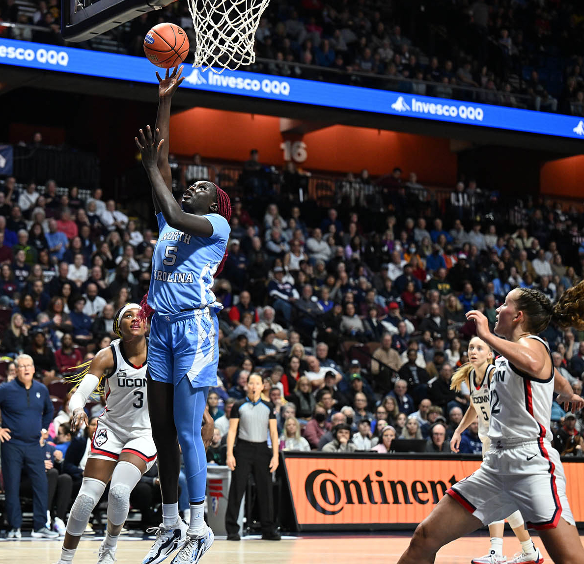 NOTES — In Sunday’s first two games, No. 2 UCLA, which won a close closed scrimmage with UNC in Dallas before the season, beat No. 20 Florida State 95–78, and No. 1 South Carolina — which escaped with a 65–58 win at UNC on Nov. 30 — topped No. 11 Utah 78–69. … UNC and UConn will play against next season at the Greensboro Coliseum. … Redshirt sophomore Teonni Key was in uniform for the first time this season a couple of weeks after finally having the boot removed from her right foot but didn’t play. … Former UNC guard Eva Hodgson, who lives in New Hampshire, was at the game. … Carolina’s 26 second-quarter points were only topped for points in a quarter by the 40 the Tar Heels scored in the third quarter against Gardner-Webb. … UConn is 38–1 all-time at Mohegan Sun Arena. … UConn leads the series with Carolina 8–4 and has won six in a row. Carolina last won when the No. 9 Tar Heels beat the No. 4 Huskies in the Jimmy V Classic at the RBC Center (currently called PNC Arena) in Raleigh on Nov. 21, 2004. … This was the 11th time in 13 meetings that both teams were ranked. … UNC is 38–8 in regular-season non-conference games under Banghart, with wins in 21 of the last 23.