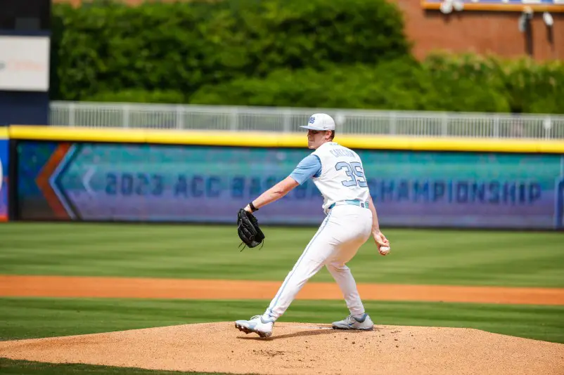 Carlson allowed a base runner in each of the first three innings, but UNC turned two double plays and he struck out the side in the other inning. He worked out of another jam in the fourth inning, but came out after giving up three consecutive singles to start the fifth inning.