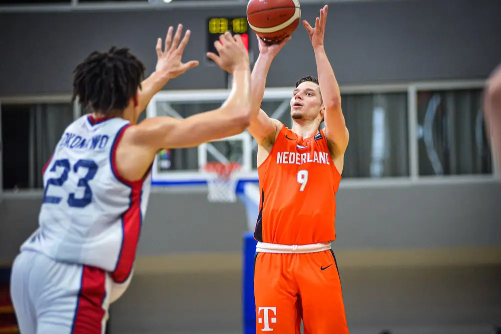 Okonkwo’s hook shot gave Great Britain a 2–0 lead 20 seconds into the game. His team built an 11–2 lead and took a 17–15 advantage into the second quarter. The Netherlands (4–2) went on a 10–3 second-quarter run and owned a 36–31 edge at halftime.