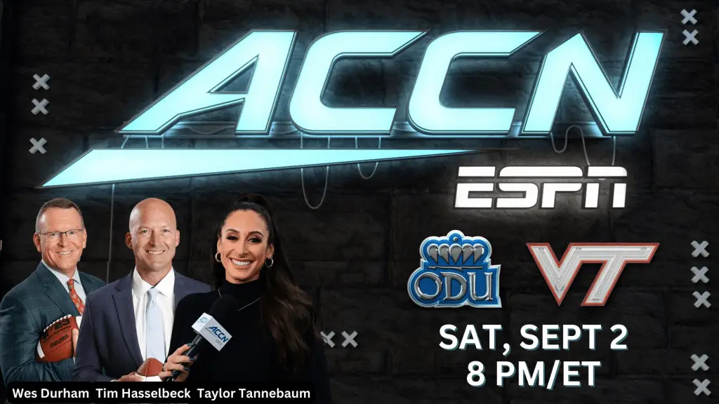 The channel will bring its “ACC Huddle” and “ACC PM” shows Friday and Saturday to the site of the ACCN prime-time game each weekend. The first three are Old Dominion at Virginia Tech on Sept. 2, Southern Miss at Florida State on Sept. 9 and Florida Atlantic at Clemson on Sept. 16.