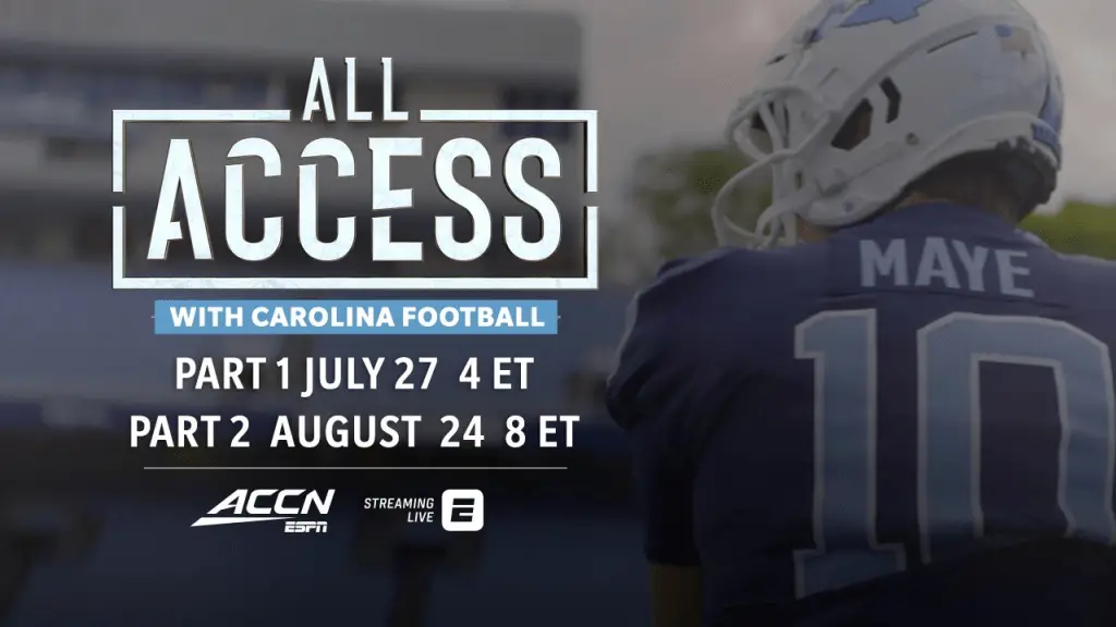 ACC Network will air a two-part series called “All Access with Carolina Football,” with episodes at 4 p.m. Thursday and 8 p.m. Thursday, Aug. 24.